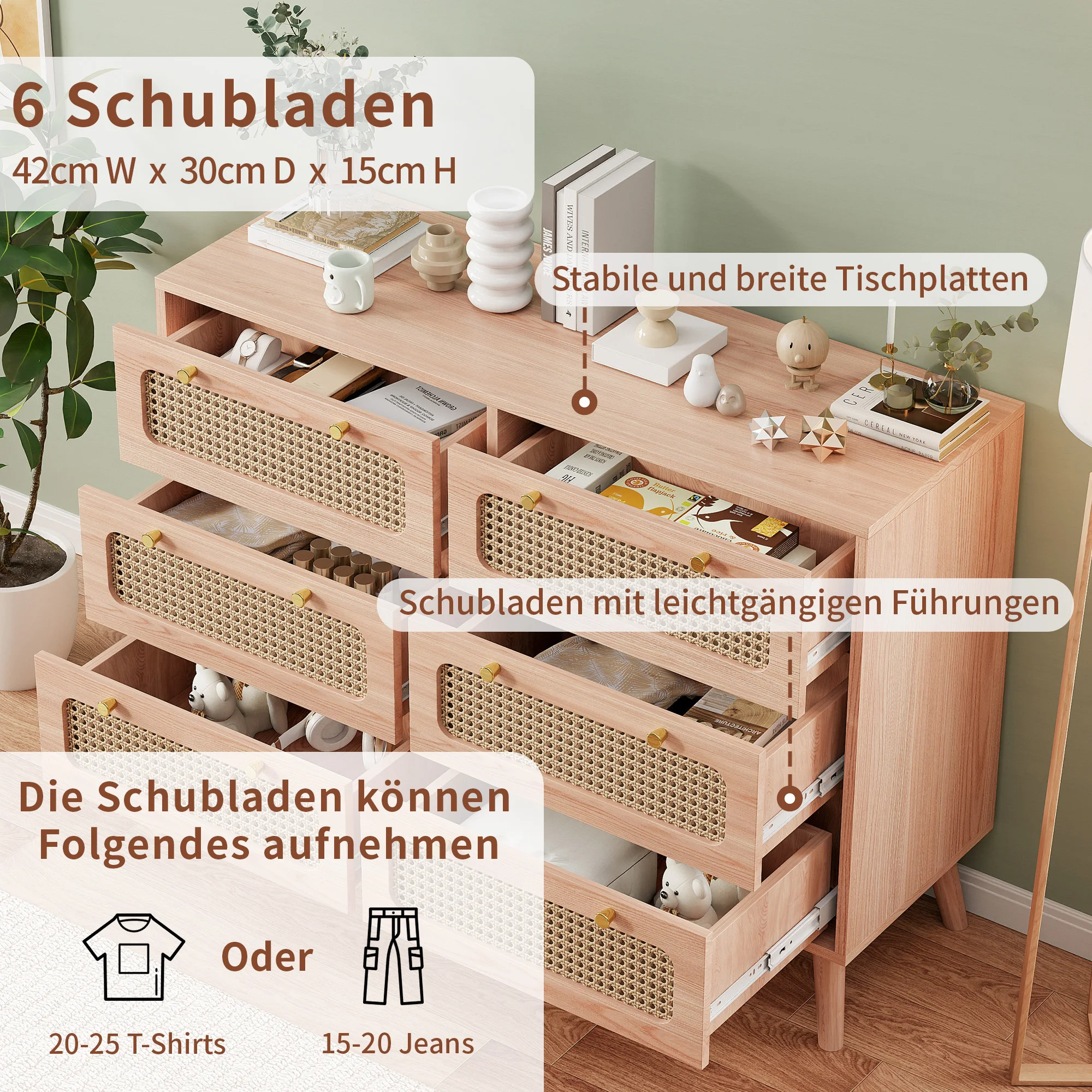 1. Natural Design: Featuring a warm, organic aesthetic, the drawer cabinet's front panels showcase a wooden slat structure that adds an elegant touch to any home.