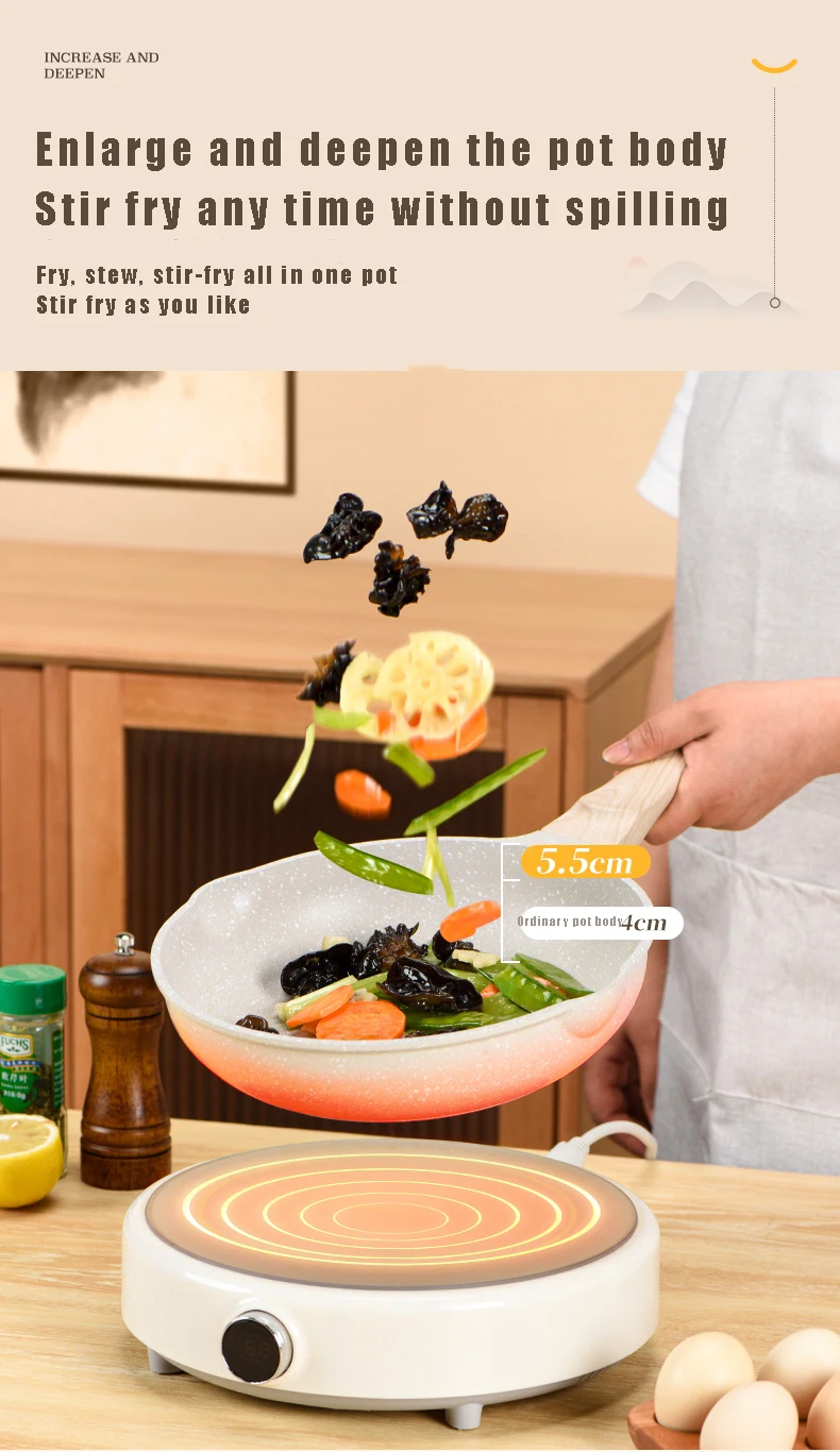 Durable Frying Pan Wok Pan Non-stick Ceramic Pot Induction Gas Stove Universal Cookware Steak Cooking Saucepan Nonstick Pan