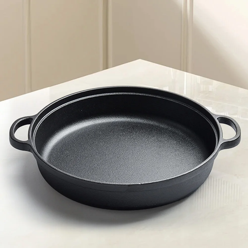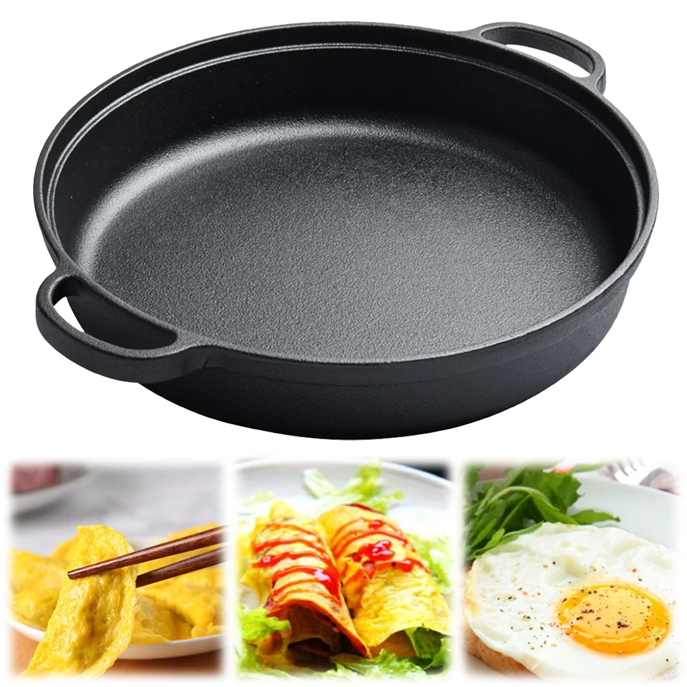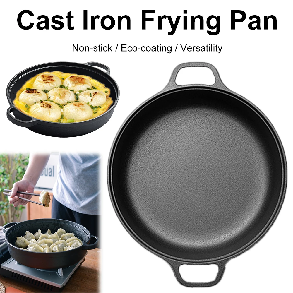 8.7/9.8/11/11.8 Inch Cast Iron Skillet with Double Handles Frying Pan Pre-Seasoned Baking Tray for Bread Baking Outdoor Cooking Camping