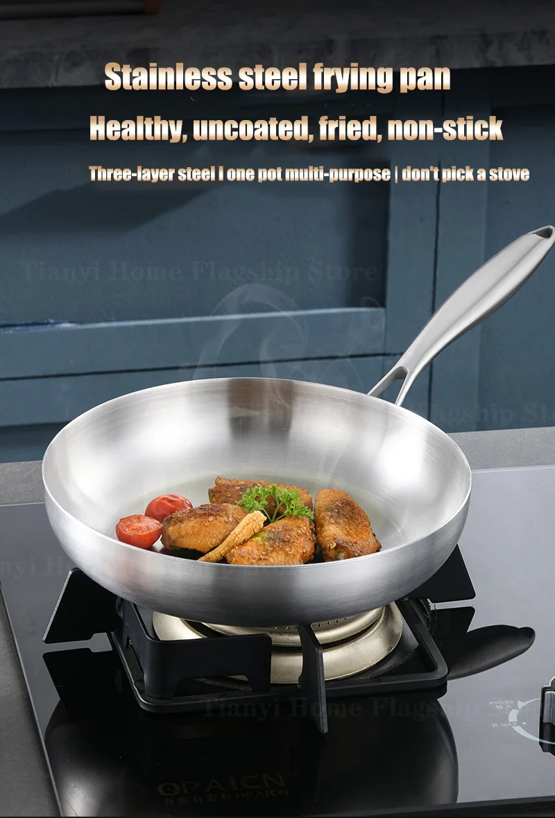 Crafted from high-quality stainless steel, this frying pan is eco-friendly and free from harmful chemicals.