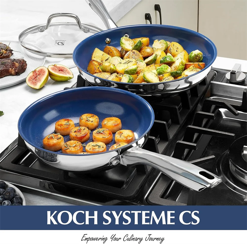 - NONSTICK BLUE CERAMIC COATINGS: Experience effortless food release and healthier cooking with our premium blue ceramic coating on this stainless steel pan. Enjoy smokeless cooking and ultimate convenience, all while using a non-toxic surface that is free from PTFE, PFOA, and PFAS.