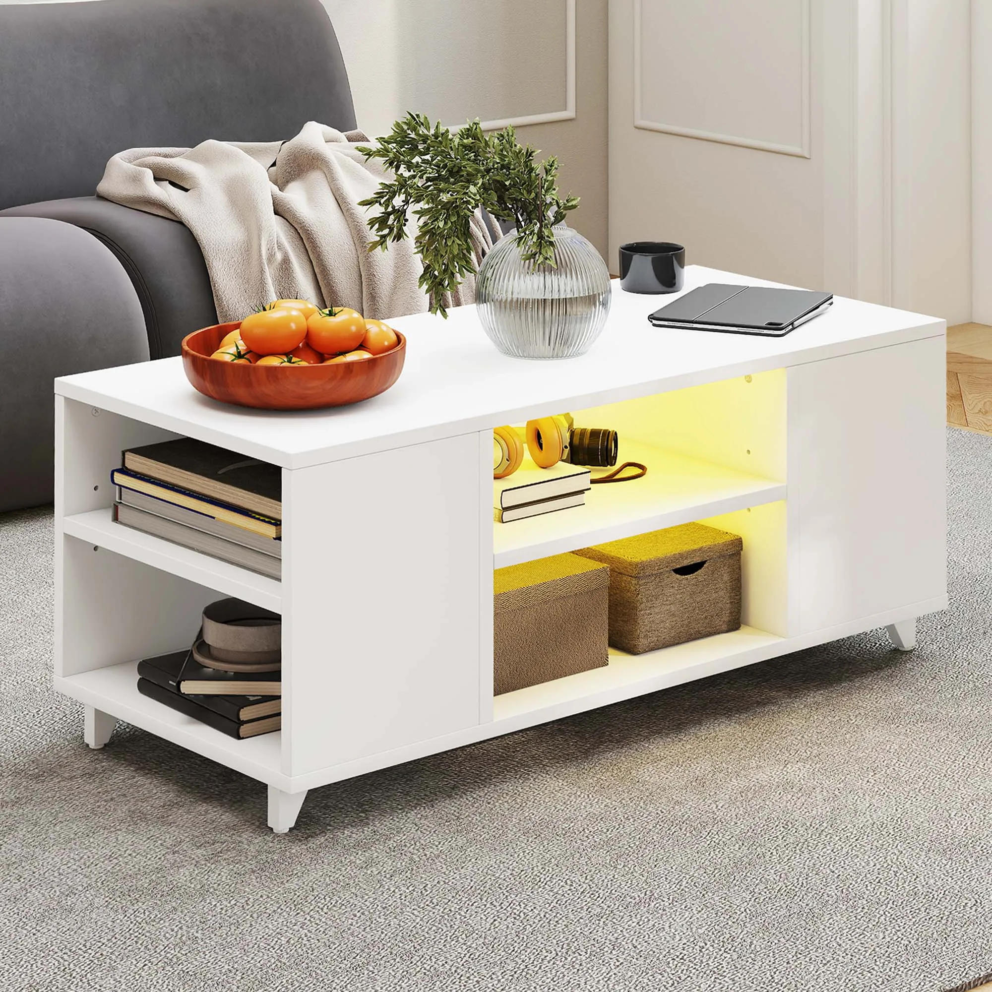 A functional white coffee table designed for living rooms, featuring adjustable side shelves that can be repositioned to suit your storage or display needs. The clean white finish complements various interior styles, from minimalist to modern, adding a fresh, tidy look to the space.