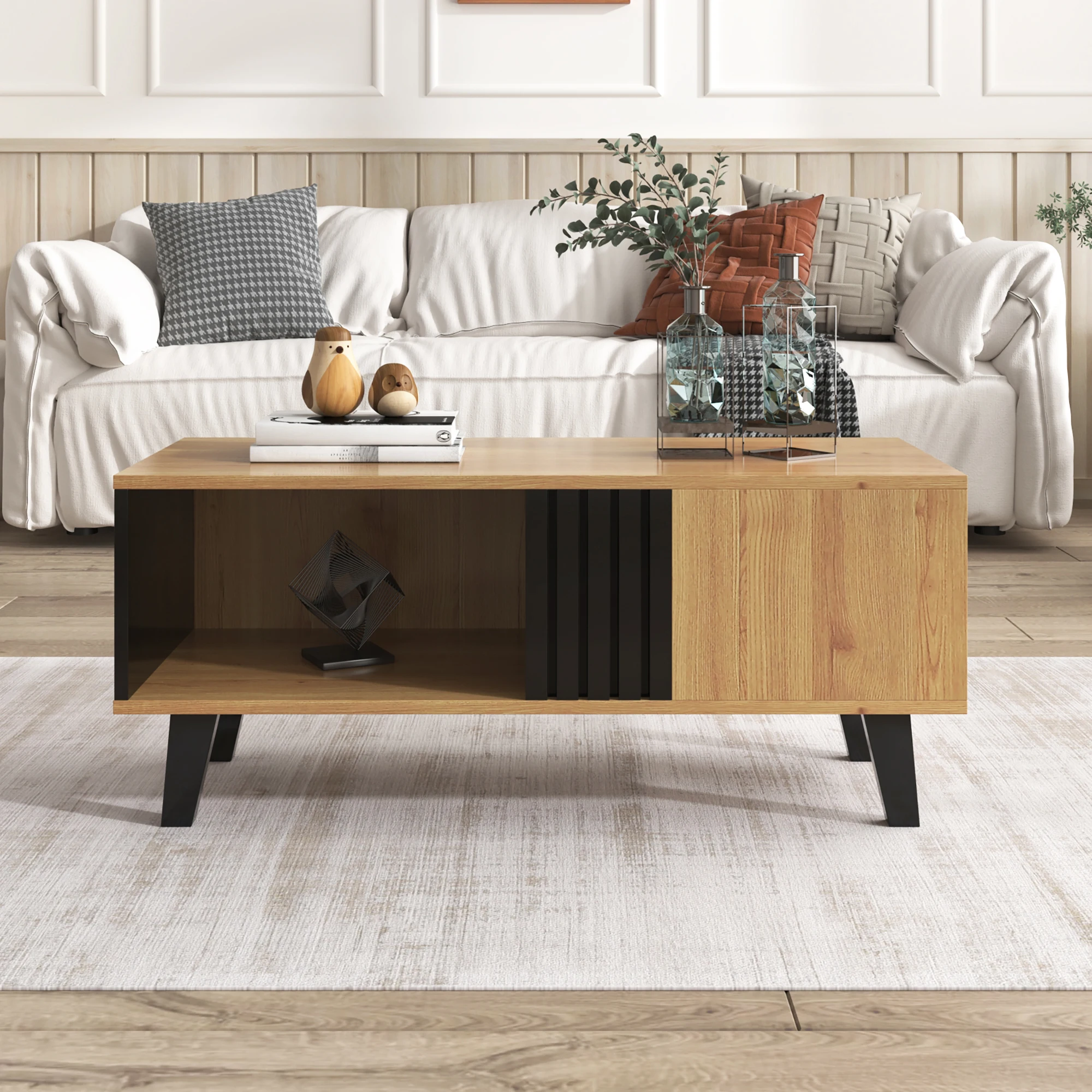 1.Innovative Design: This coffee table is designed with an innovative combination of wood and black, with the wood grain highlighting the natural beauty.