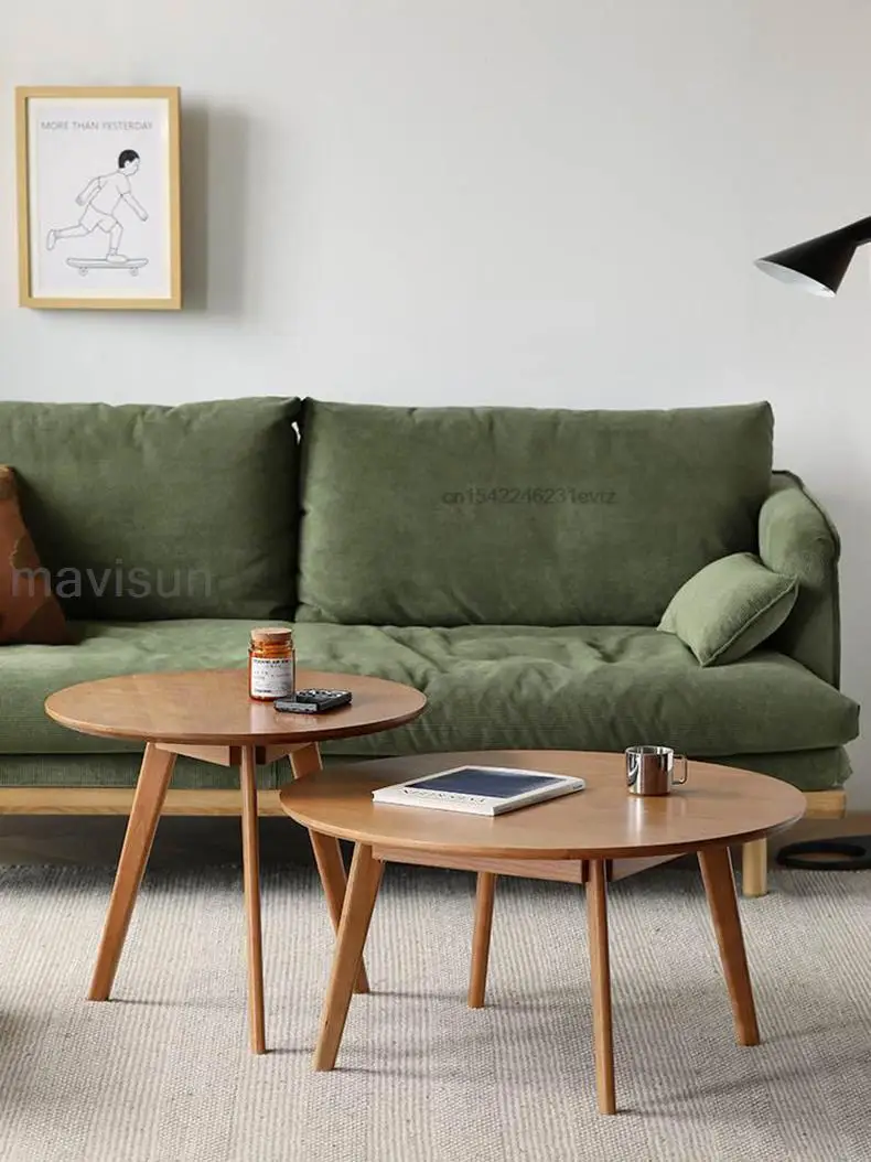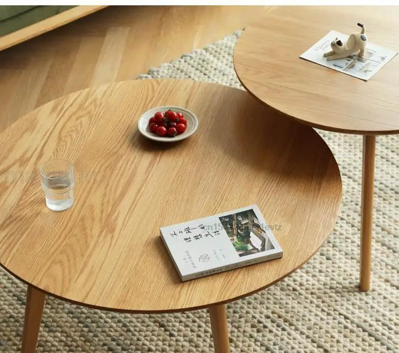 Nordic Solid Wood Oak Small Apartment Sofa Side Table Round A Set Of 2 Nesting Coffee Table For Living Room Auxiliary Furniture