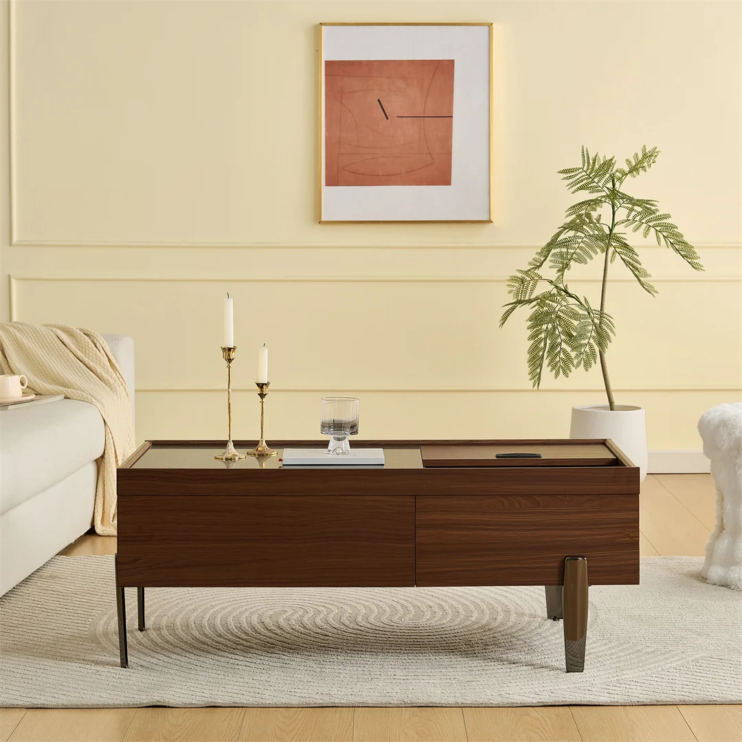 FLEXIBLE NUTZUNG – Schiebeabdeckung mit schwarzem Griff ermöglicht eine variable Nutzung der Tischoberfläche und verdeckten Stauraums.