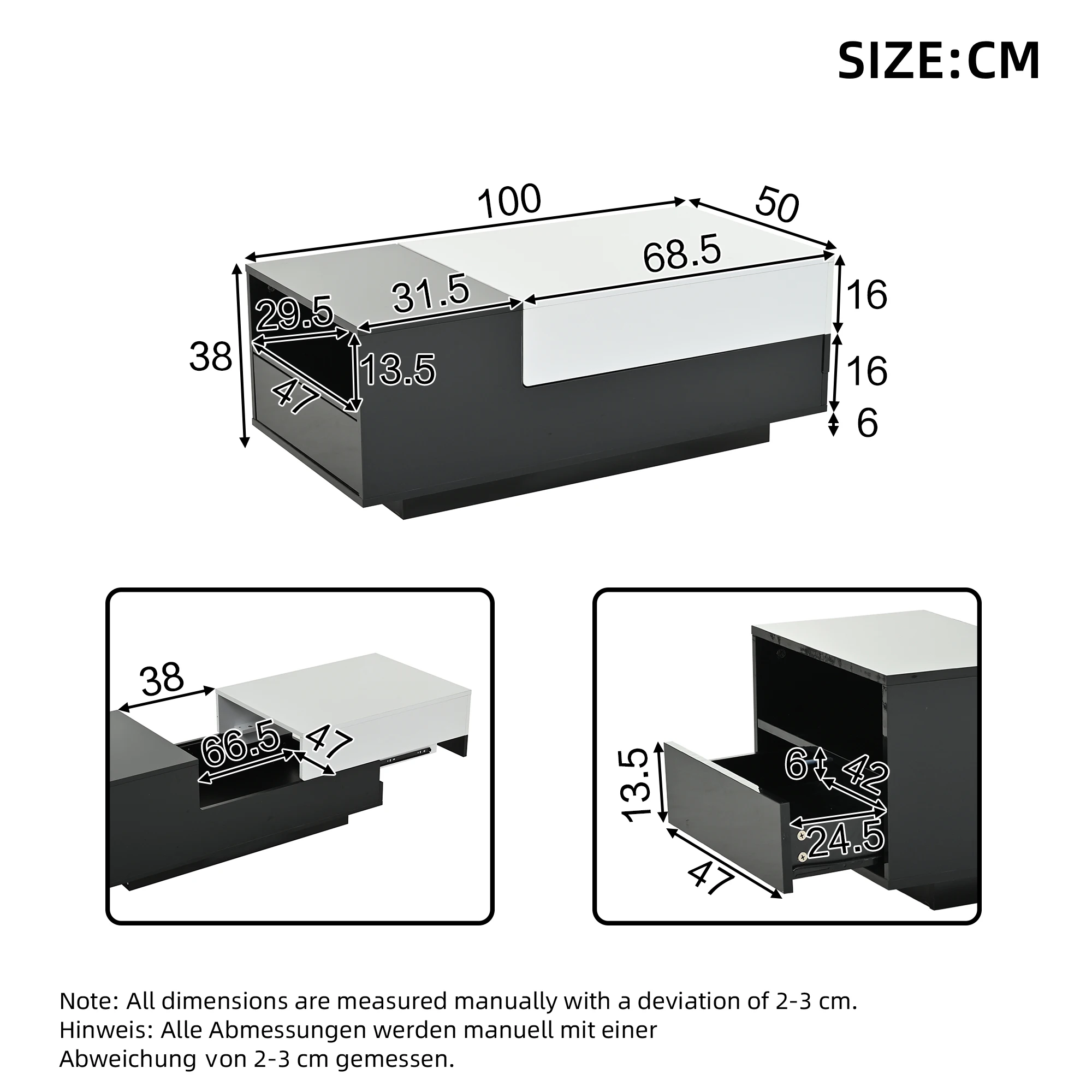 -Compact coffee table with storage space during the day; In the evening with a lifting function to the Home Office-desk or party dining table folded up-everything from one furniture!