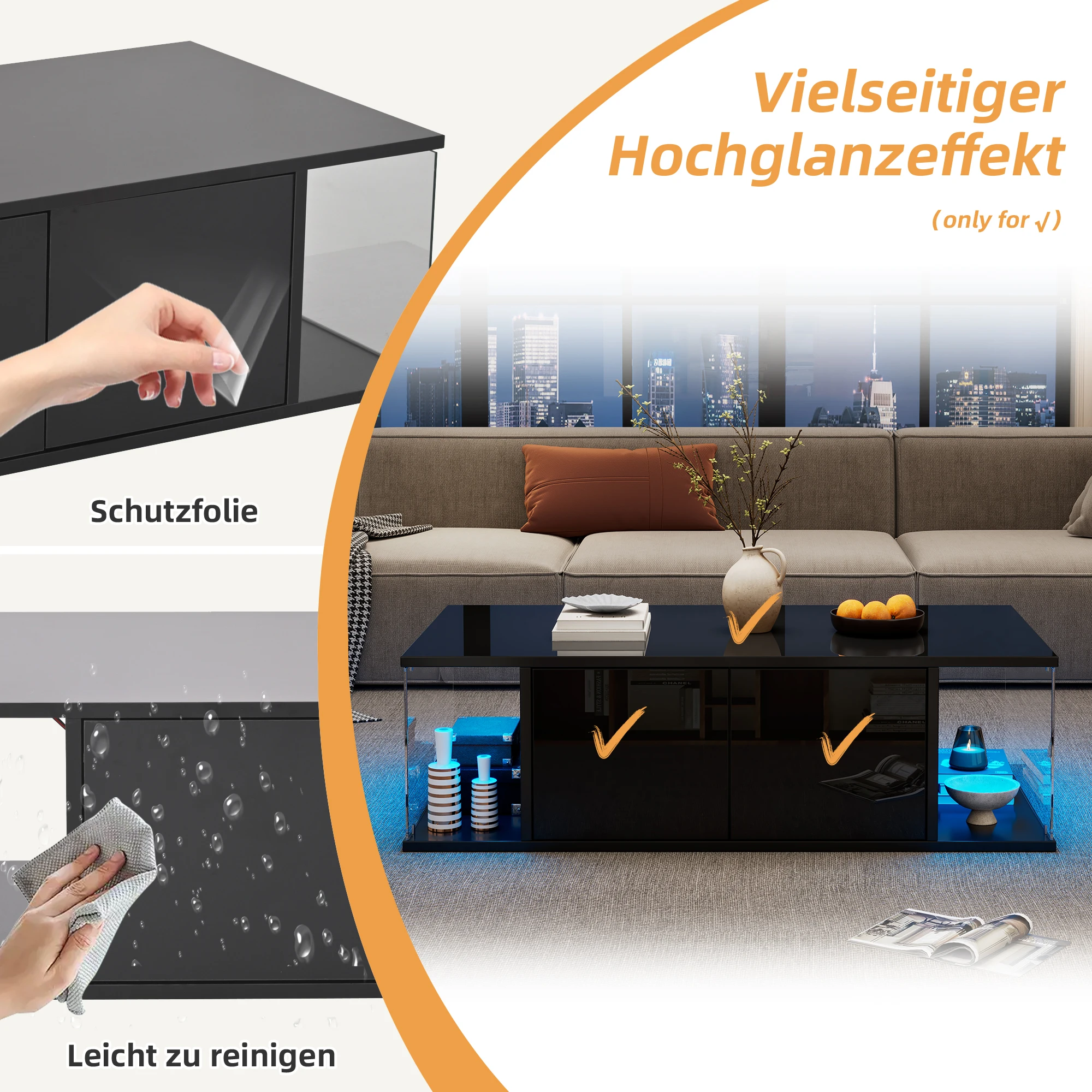 -High-gloss lacquer plus glass make coffee stains & dust disappear in seconds; permanent showroom shine without chemicals.