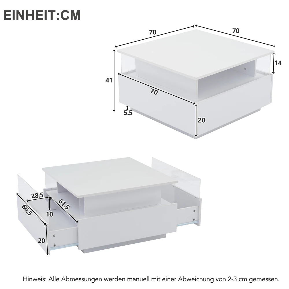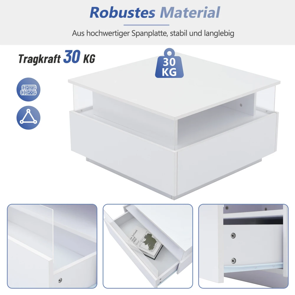 Adjustable LED lights: The modern white coffee table with LED light control via app and remote offers 29 dynamic styles and over 6,000,000 color options, so you can easily change the atmosphere of your room from your couch.