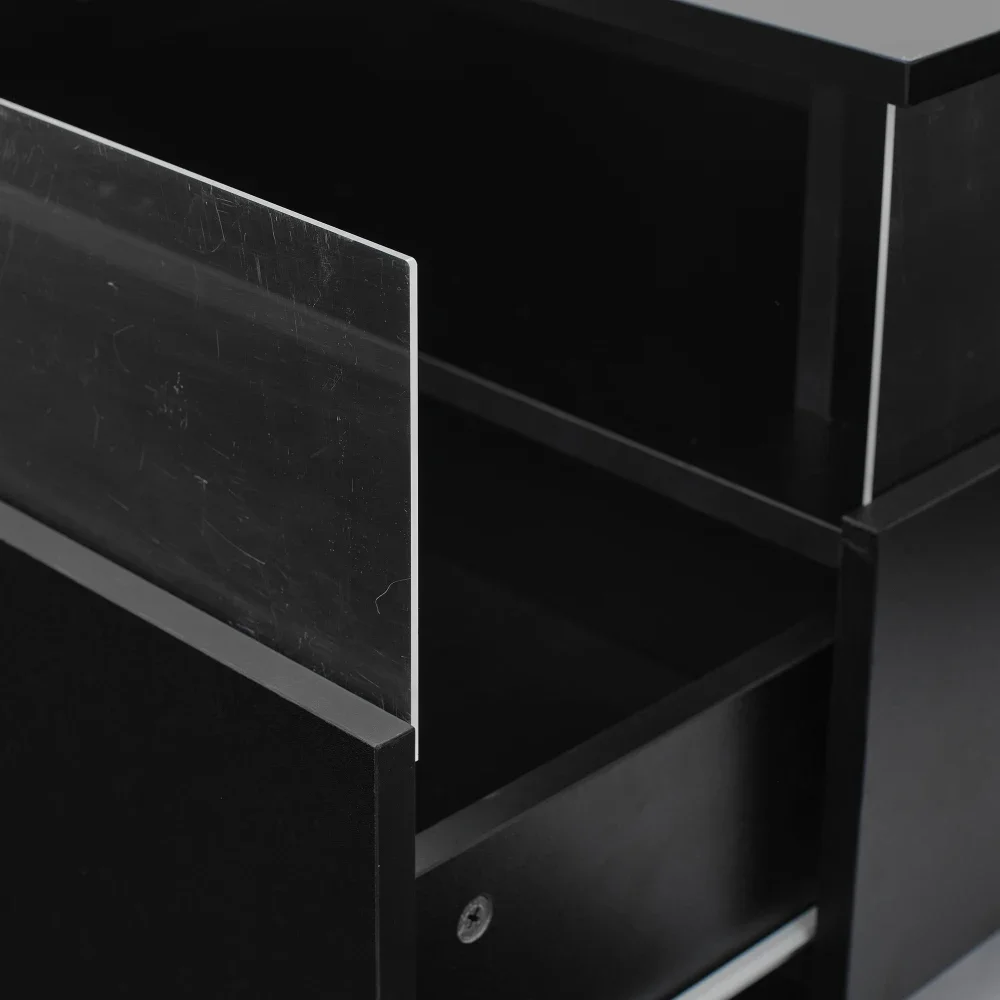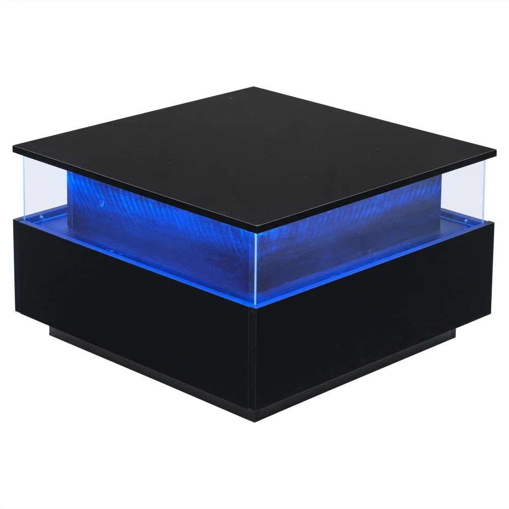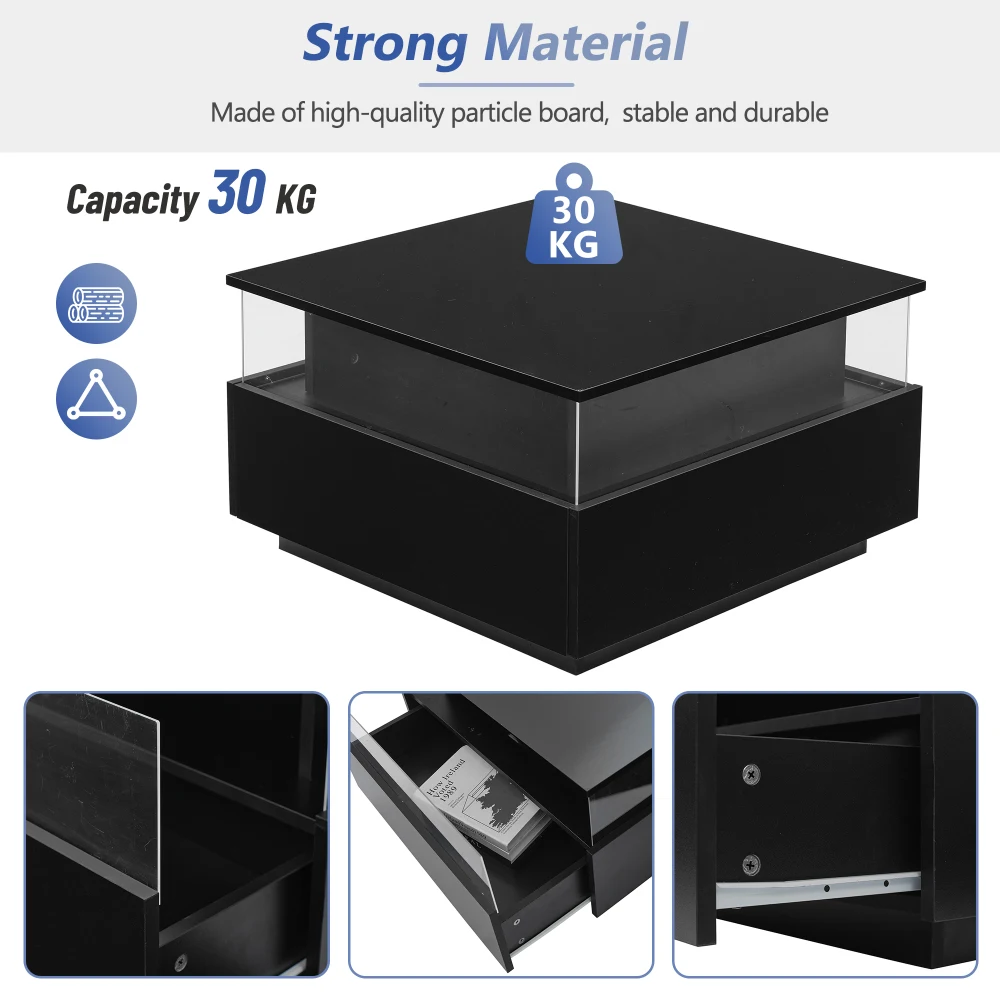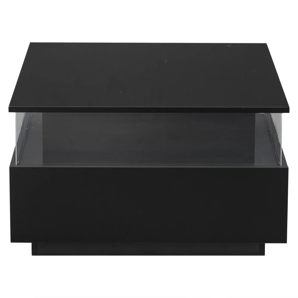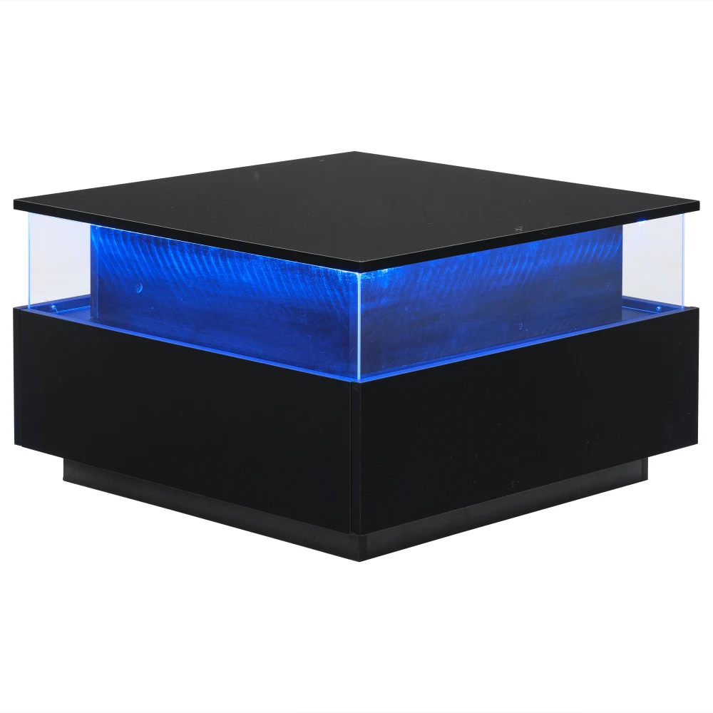 This coffee table in the dimensions 90x55x45 cm impresses with a smooth, high-gloss surface and is equipped with two practical drawers, provide you with sufficient storage space for remote controls, magazines or other personal items. Featuring a unique transparent presentation area and LED lighting, this table highlights your decorative items and creates a pleasant atmosphere in your room. Thanks to its robust design, the table can carry a load of up to 30 kg and remains stable even in intensive use. The LED lighting gives the table a modern flair and provides a relaxing light source in the evening. Whether as a stylish eye-catcher or functional piece of furniture, this coffee table offers the perfect combination of design and utility. Let your living room decor shine and enjoy the benefits of a thoughtfully designed piece of furniture that combines style and comfort.