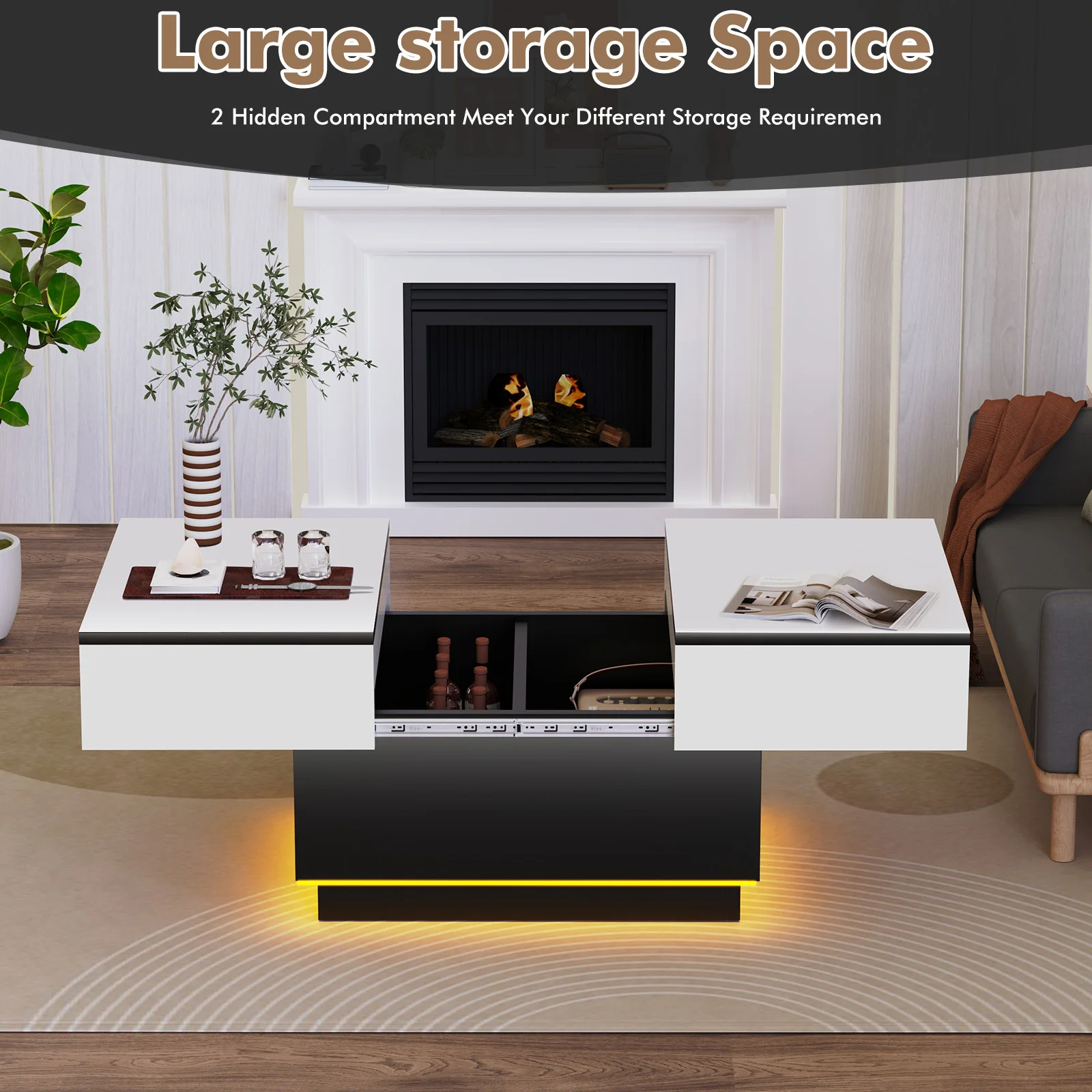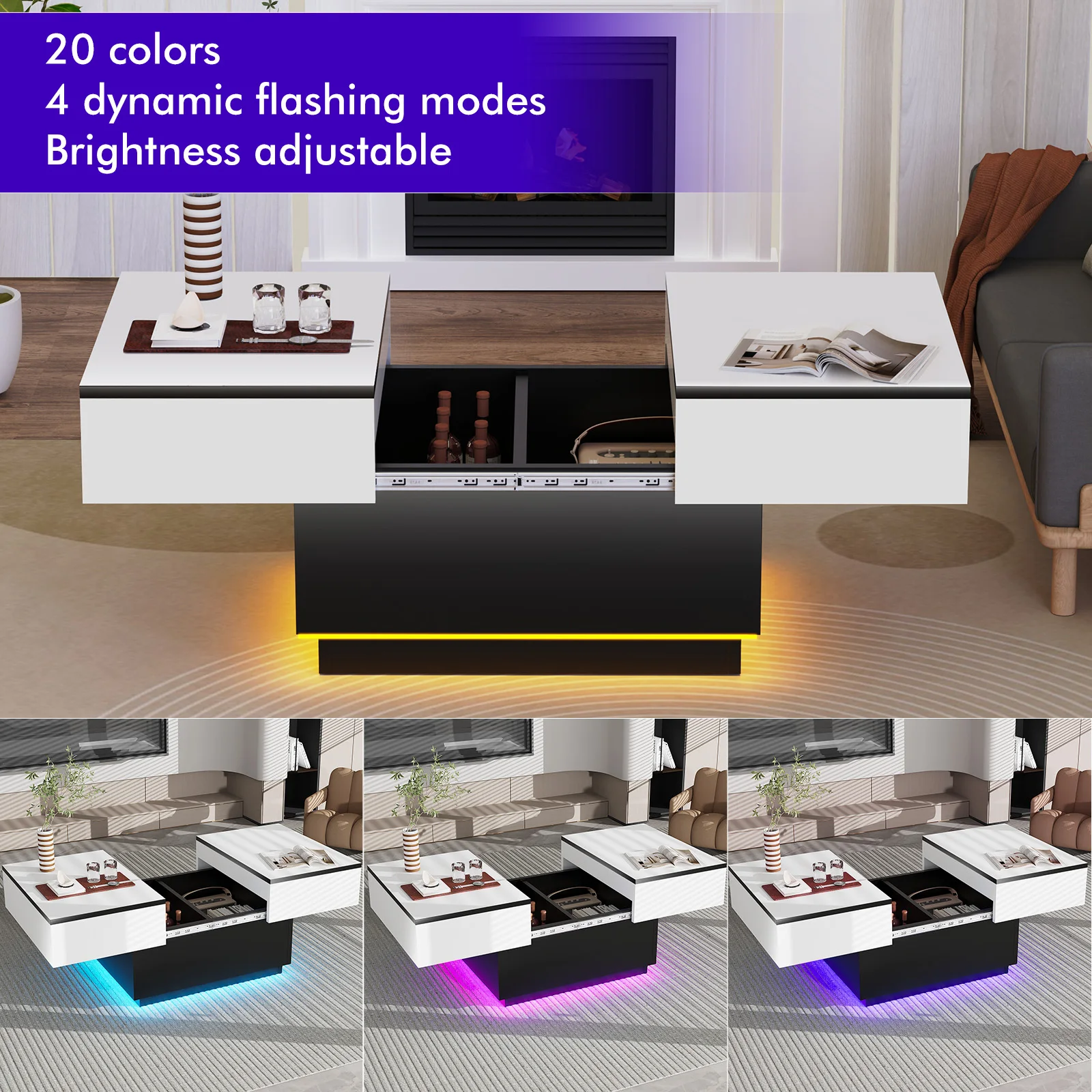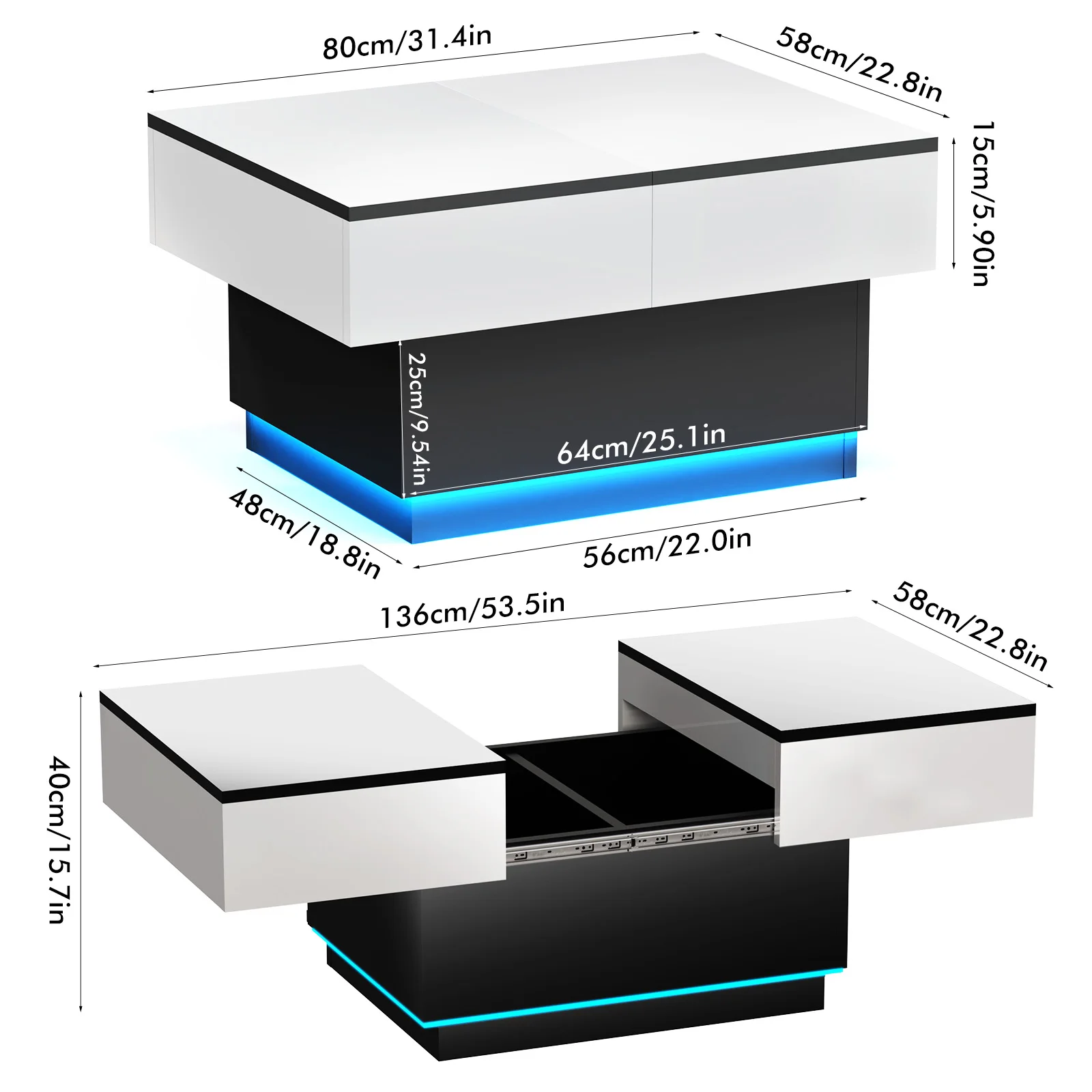 【White Coffee Table with Storage】The table features three-piece side rails, a retractable coffee table top for easy access and plenty of hidden storage space. The spacious interior features two hidden compartments to keep the table top clean and dust-free.