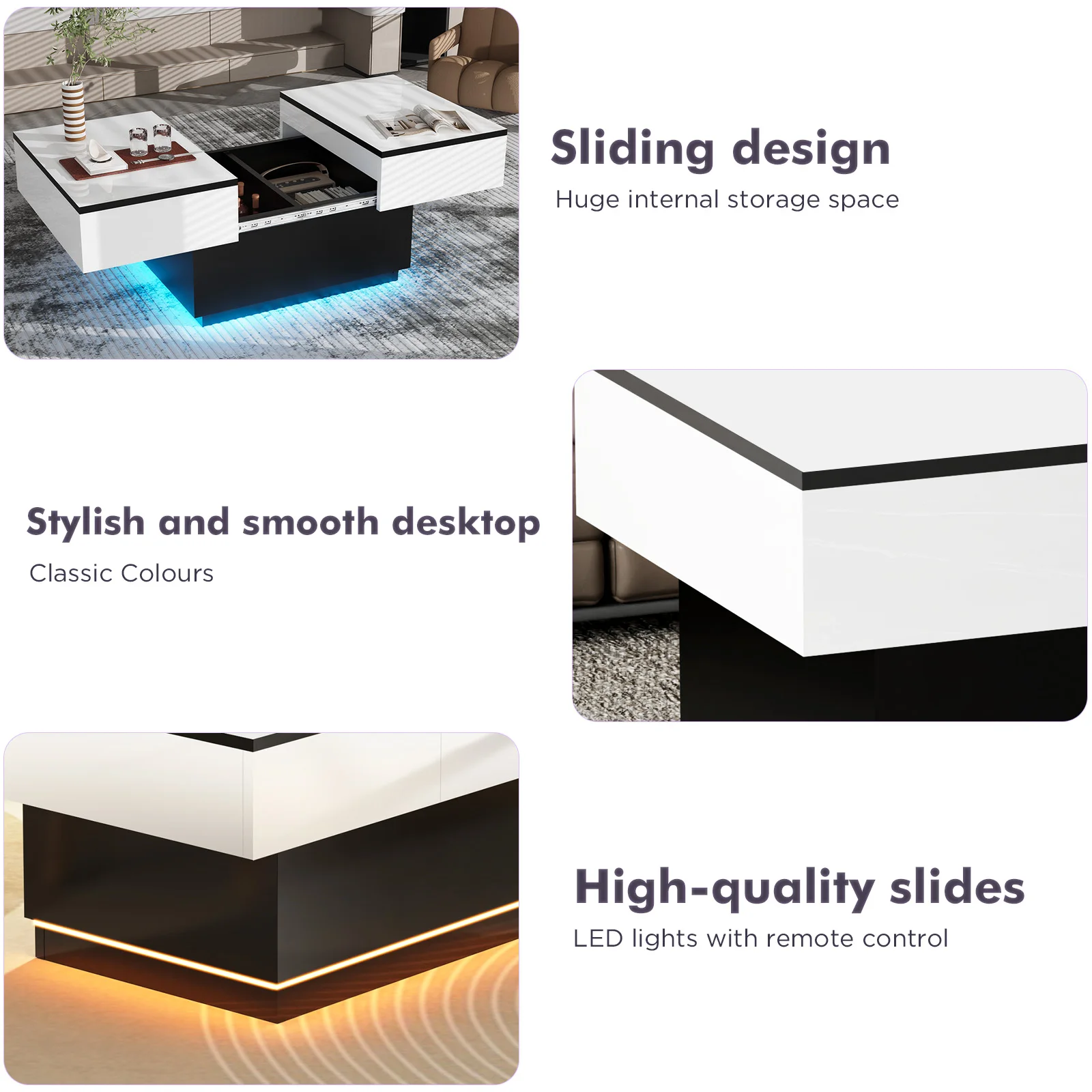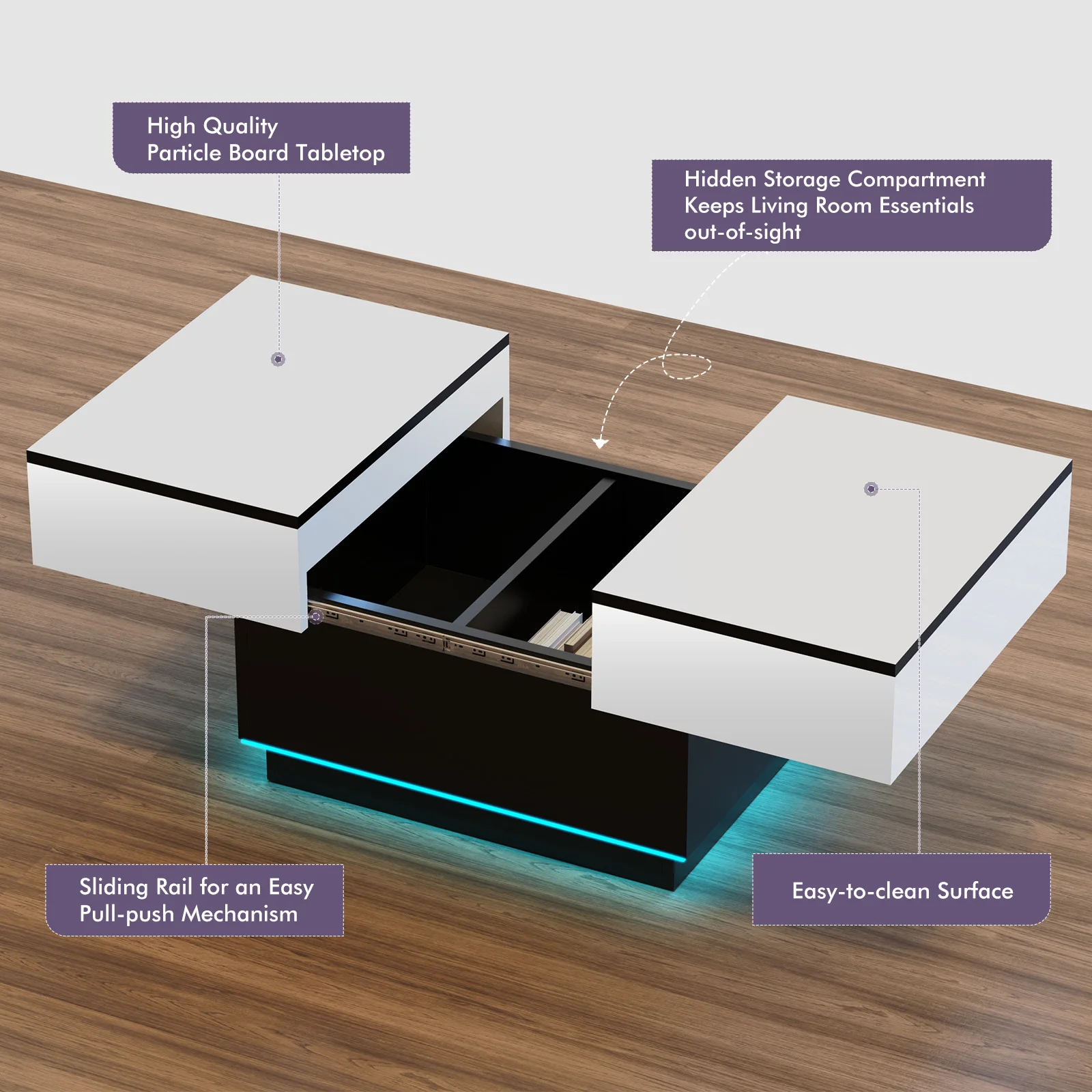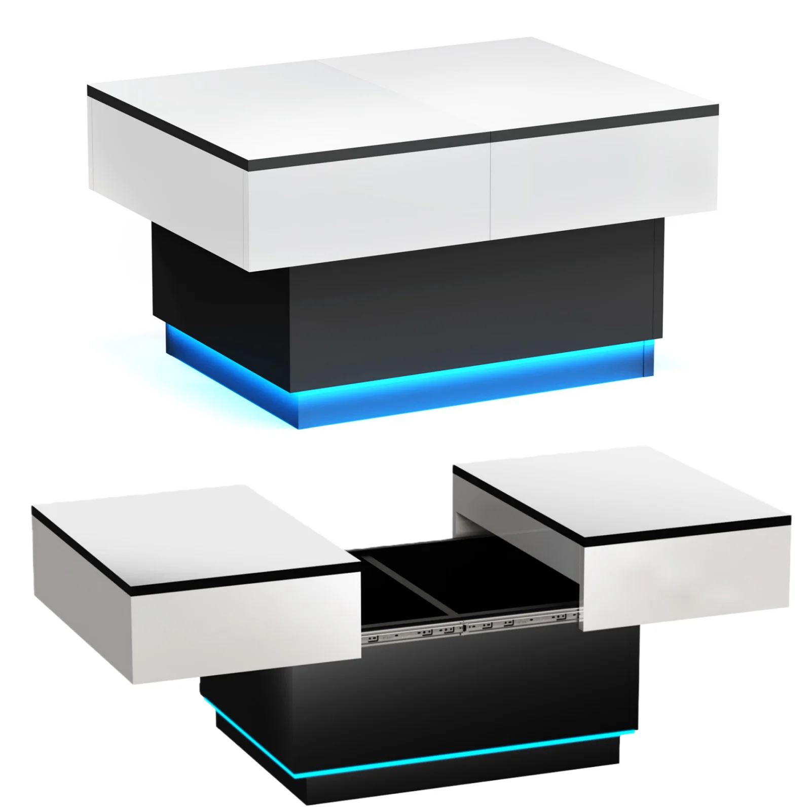 【White Coffee Table with Storage】The table features three-piece side rails, a retractable coffee table top for easy access and plenty of hidden storage space. The spacious interior features two hidden compartments to keep the table top clean and dust-free.