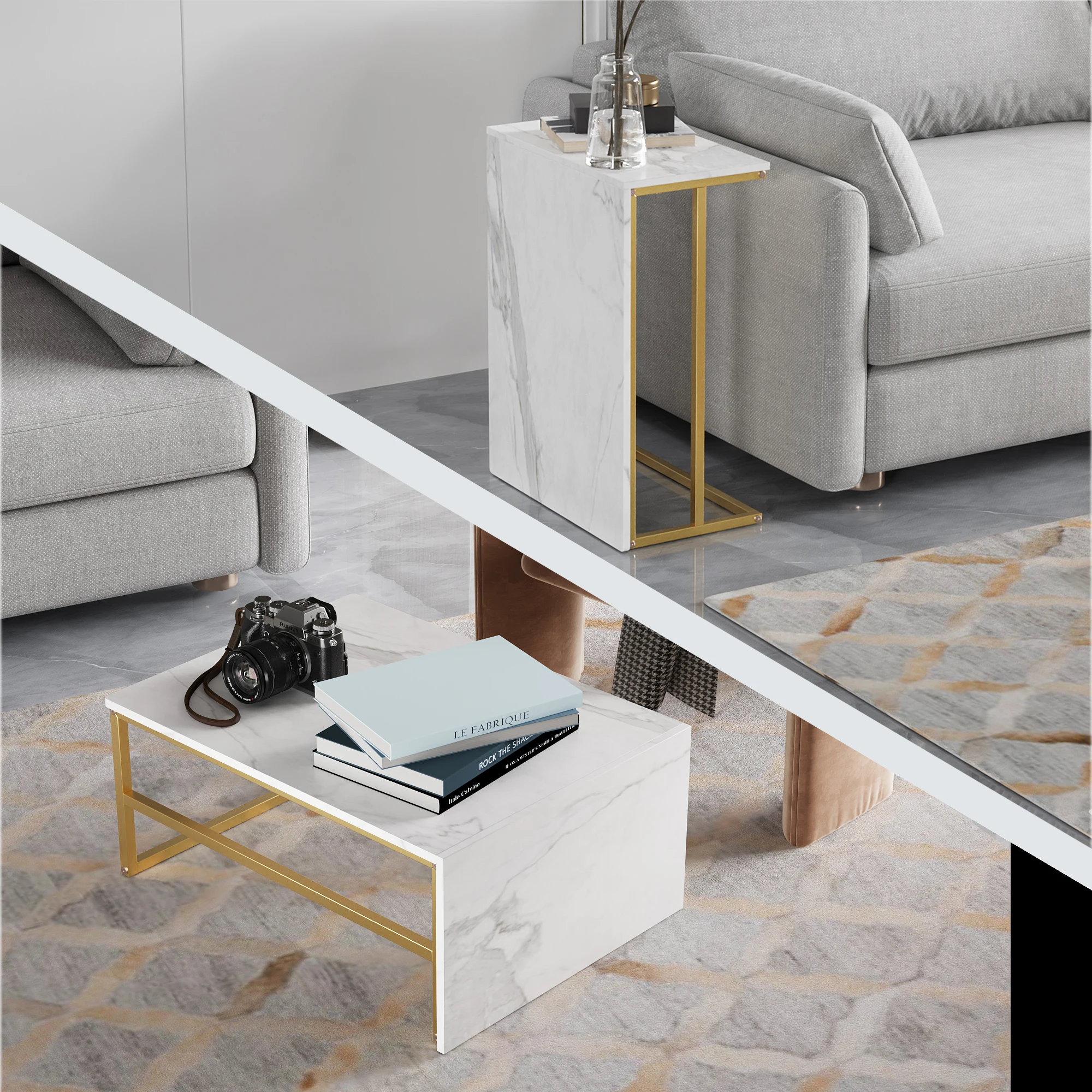 1.Modern 2-Piece Set - Sleek metal frame and contemporary design. Perfect as coffee or bedside tables to enhance your living room or bedroom.
