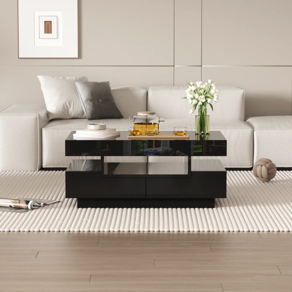 Table basse rectangulaire laquée avec tiroir et LED