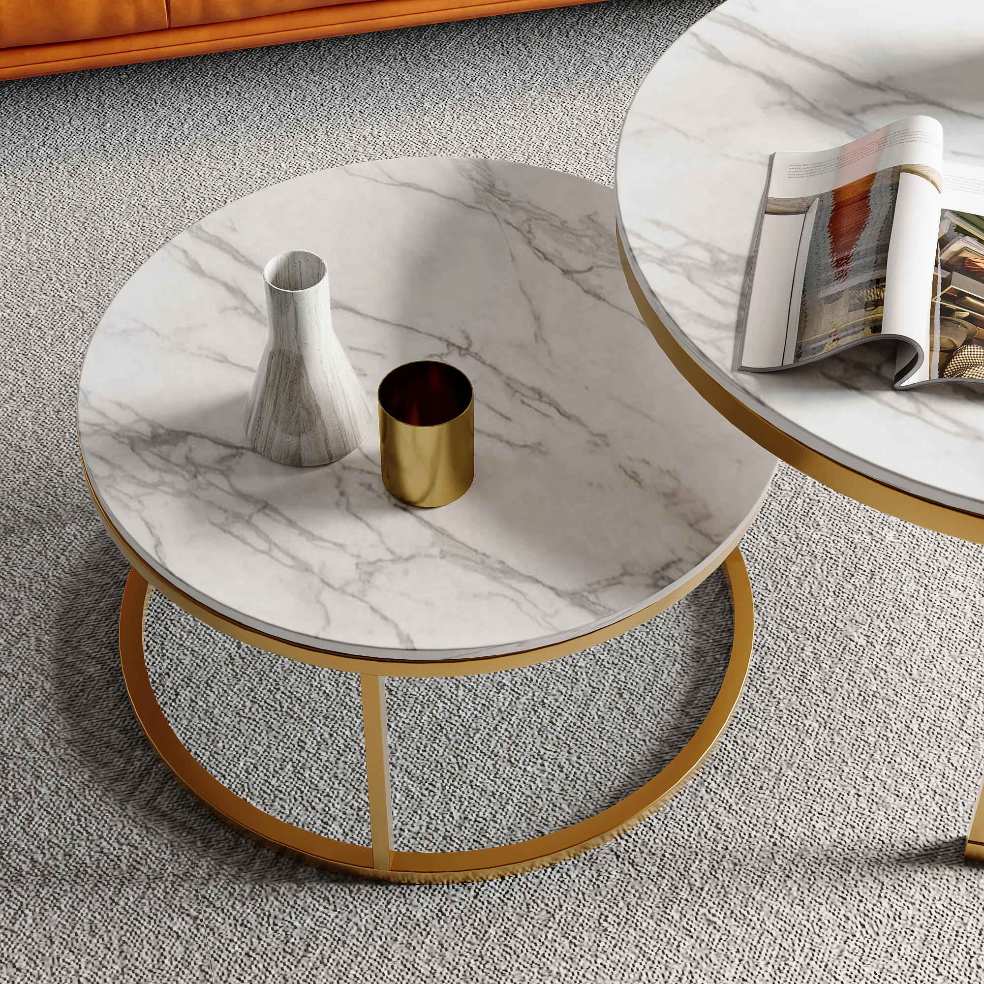 Unique design:Our coffee table set blends practicality and style. It includes two round nesting tables of different sizes: a large low table (80x80x45 cm) and a small side table (60x60x33 cm). You can easily stack them or use them separately.