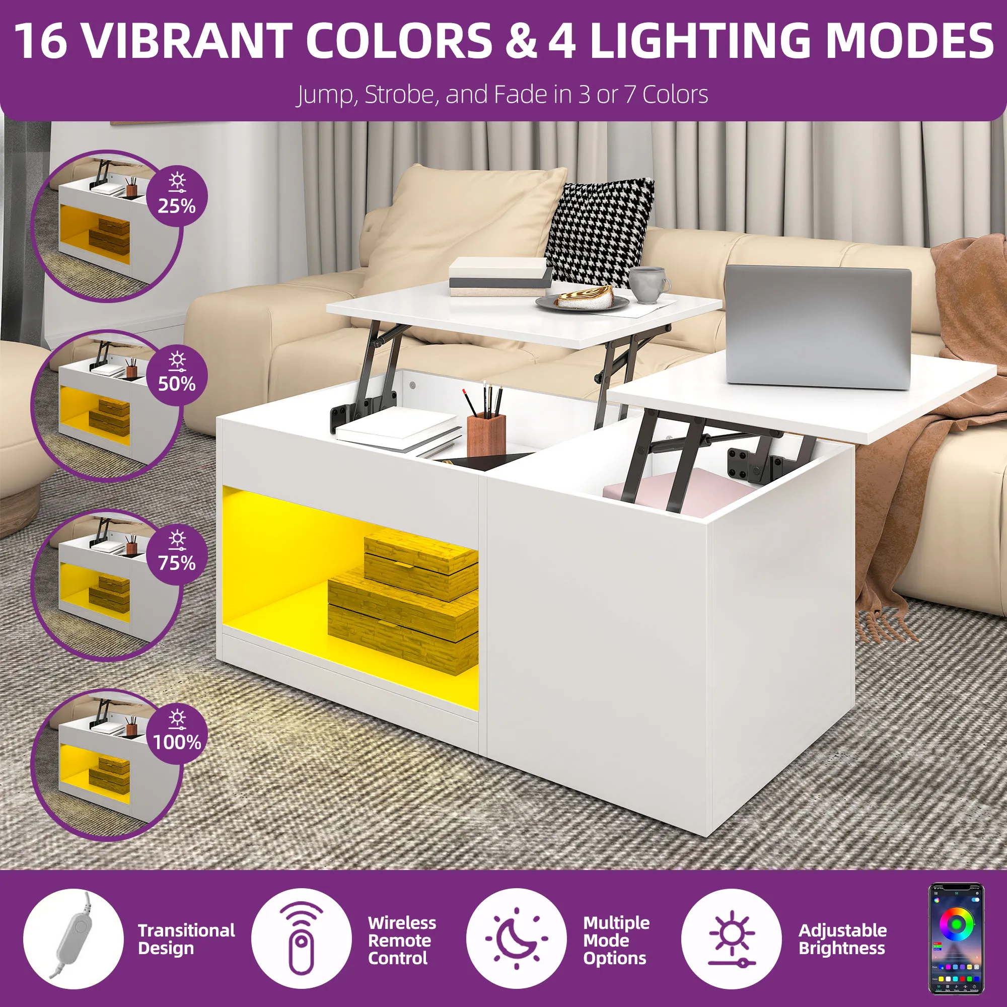 Coffee Table with 16 Colour LED Strip Lights: Equipped with LED lights that have 16 individual colours to choose from, creating the perfect lighting for any situation. The colour of the light strip can be controlled with a remote control or via an app, and the lights can even synchronise the rhythm of the music to create dynamic lighting effects. From cosy evenings to lively get-togethers, this modern LED coffee table provides the right lighting for everything.