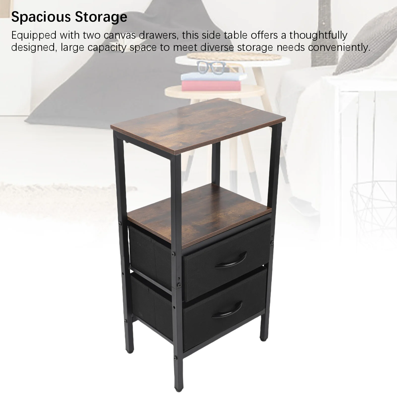 3. Spacious Storage: Equipped with two canvas drawers, this side table offers a thoughtfully designed, large capacity space to meet diverse storage needs conveniently.