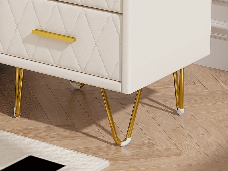 3.Robust and easy to clean: the bedside table set of 2 is made of durable PU material, which is particularly stable and water-repellent. The surface is easy to clean, making the bedside cabinet a practical and hygienic choice for any household. The golden metal feet also provide stability and durability.