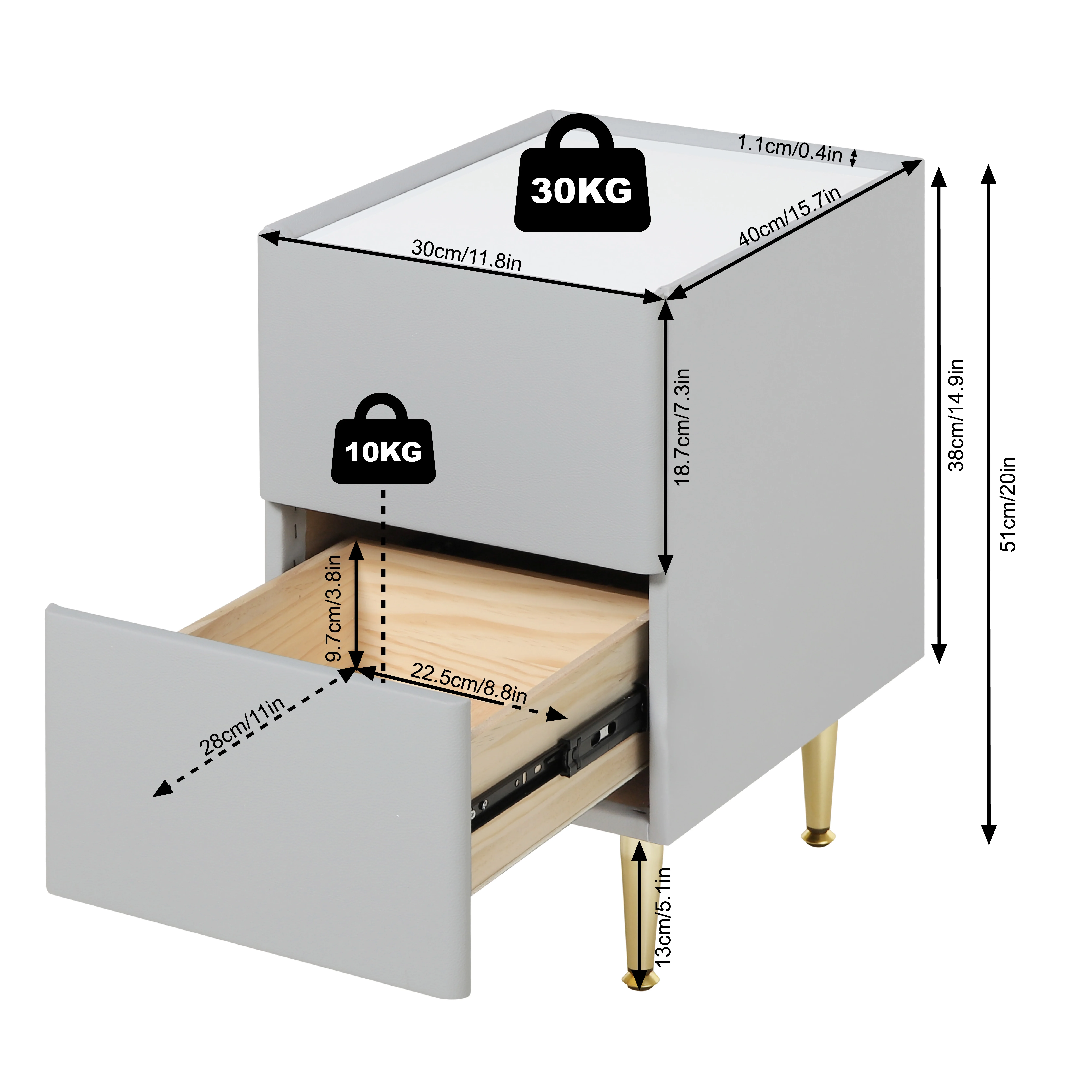 Large storage space: with 1 wide table top and 2 large solid wood drawers, which are equipped with 3-piece metal rails for smooth and quiet opening and closing, the bedside table offers ample storage space for daily things