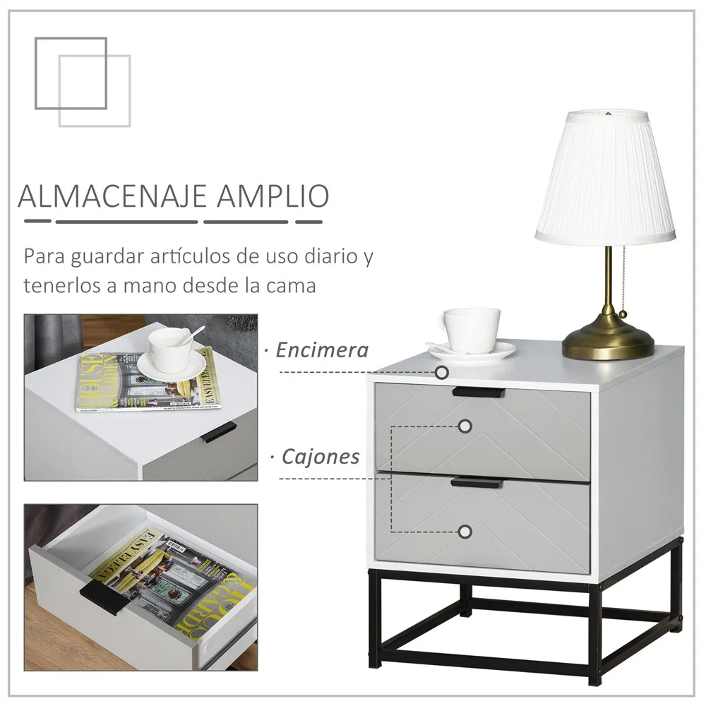Table de nuit moderne blanche et gris 39.5X40X48 cm