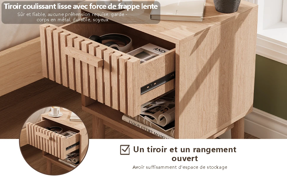 2. [Double storage for flexible and organized storage] The bedside table with drawers has open storage compartments. Sliding drawers allow you to store your personal belongings, while open compartments are convenient for frequently read books, optimizing the space of your bedside table with drawers.